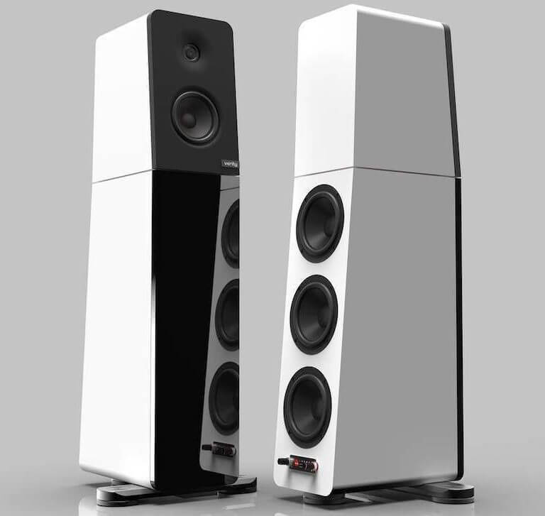 Verity Audio Lakmé получили довольно необычную компоновку. В этой акустике ВЧ-СЧ-звено из купольного твитера с несколько видоизмененной мембраной и привычной конструкцией кастомного драйвера средних частот размещено в верхней части фронтальной панели. Эти излучатели были вынесены в отдельный бокс — часто встречающееся решение. Зато низкочастотное звено, состоящее из активного драйвера и двух пасссивных излучателей с идентичными диффузорами, расположилось на задней панели нижнего «сабвуферного» корпуса колонки. К слушателям обращена его зеркальная поверхность, оформленная в черном либо «атласно-белом» лаке. Verity Audio периодически намерены выпускать и другие варианты дизайна, меняя, в частности, цвет передней панели. Кабинет Lakmé опирается на трехопорный виброизолирующий кронштейн Masis — так называется фирменная система механической изоляции, унаследованная от старших моделей бренда. Три регулируемые ножки позволят легко перемещать громкоговоритель по полу без царапин. АС Lakmé в числе моделей акустики Verity Audio заняли место между моделями Verity Finn и Otello. Lakmé лучше всего использовать в комнатах небольшого и среднего размера.