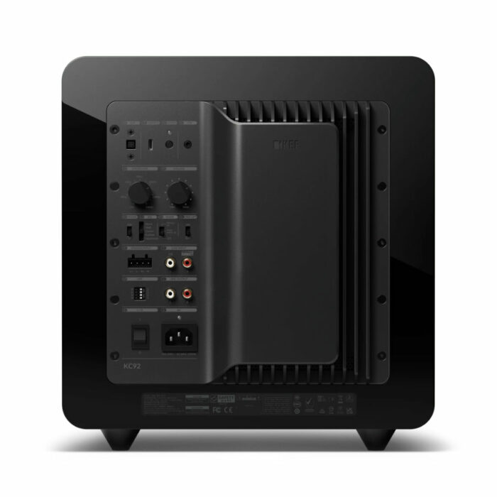 Активный сабвуфер KEF KC92 имеет сравнительно компактные размеры, но при этом развивает существенное звуковое давление и воспроизводит самые глубокие басы. Аппарат станет отличным выбором для использования с крупной напольной акустикой в составе стереосистем или домашних кинотеатров. KEF KC92 выпускается в лаковой отделке в демпфированном корпусе со скругленными углами. Модель хорошо вписывается в интерьер и обладает значительной гибкостью в размещении. Одной из важных особенностей KEF KC92 является установка в нем двух противоположно направленных басовых динамиков, расположенных соосно и работающих на общий внутренний объем. Это позволило решить несколько задач: повысить отдачу на басах, сделать их распространение в комнате более равномерным, а также устранить вибрации корпуса, способные вызвать искажения звука. Последнее обстоятельство объясняется тем, что волны от обратных сторон диффузоров взаимно гасят друг друга. Басовики имеют гибридные диафрагмы из алюминия и бумаги и оснащены вентилируемой звуковой катушкой для устранения перегрева. Их подвесы выполнены по технологии P-Flex, которая обеспечила получение эластичной структуры, устойчивой к резонансам. Благодаря этому диффузоры способны быстро перемещаться, не создавая посторонних призвуков. Мощность встроенных усилителей KEF KC92 составляет 2 х 500 Вт. Для управления звучанием сабвуфера в зависимости от выбранного режима и воспроизводимого контента служит фирменный процессор Music Integrity Engine (MIE). Один из его алгоритмов, Intelligent Bass Extension, анализирует сигнал и вносит коррективы в работу саба для получения наиболее глубоких и проработанных басов. Есть переключатель для выбора одного из пяти режимов коррекции характеристики аппарата при различных сценариях его размещения в комнате. KEF KC92 оснащен линейными и акустическими входами. Система SmartConnect обеспечивает правильную работу секции линейных подключений. Также предусмотрен разъем приемника беспроводного комплекта KW1 (приобретается отдельно). Для управления питанием есть 12-вольтовый триггерный вход и система распознавания наличия входного сигнала.