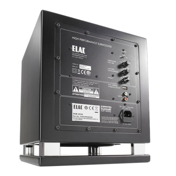 ELAC SUB 2030 – это активный сабвуфер классической компоновки, созданный с использованием современных технологий. 10-дюймовый динамик, нагруженный на закрытое акустическое оформление, приводится в движение так называемым BASH-усилителем (Bridged Amplifier Switching Hybrid), который удачно сочетает в себе преимущества классов AB и D. ELAC SUB 2030 собран в закрытом корпусе из ДВП увеличенной толщины, и оснащен направленным в пол динамиком диаметром 250 мм. Этот излучатель имеет усиленную корзину с большим количеством отверстий для свободного прохождение воздушного потока, и мощнейшую магнитную систему, диаметр которой лишь немного уступает диаметру самого динамика. Для создания оптимальных условия для работы НЧ-динамика сабвуфер имеет специальную полость в нижней части корпуса, образованную дополнительной панелью, в которую и происходит излучения звуковых волн. Таким образом, качество басов сабвуфера не зависит от свойств пола, и ELAC SUB 2030 можно устанавливать даже в углах комнаты. Благодаря качественному демпфированию корпуса сабвуфер не создает призвуков даже при работе на максимальной громкости. Сабвуфер оснащен линейным входом, а также имеет USB-разъем для подключения фирменного приемника беспроводного сигнала ELAC Wireles Dongle. Это сделает размещение сабвуфера в помещении прослушивания гораздо более легкой задачей. Предусмотрена регулировка уровня входного сигнала, частоты настройки входного фильтра в пределах от 44 до 160 Гц, и плавное изменение абсолютной фазы от 0 до 180 градусов. Сабвуфер имеет систему автовключения при появлении входного сигнала, что очень удобно при его скрытом размещении. Встроенный усилитель развивает мощность до 350 Вт, поэтому несмотря на компактные размеры, ELAC SUB 2030 можно использовать для озвучивания даже довольно крупных помещений. Внешняя отделка сабвуфера может быть черной или белой, и благодаря лаконичной внешности и очень высокому качеству изготовления аппарат хорошо впишется в современный интерьер. При правильной настройке, выполнить которую не слишком сложно, ELAC SUB 2030 органично дополнит как стереосистему, так и домашний кинотеатра. Благодаря довольно глубоким басам аппарат будет хорошо работать даже с напольной акустикой средних размеров, а широкий диапазон регулировки входного фильтра позволит точно согласовать его с компактными сателлитными АС. Компания рекомендует использовать ELAC SUB 2030 совместно с акустикой 180, 60.2 и 50.2-серий, а также с моделями Cinema.