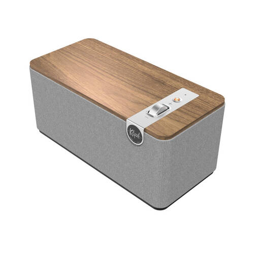 Настольные акустические системы Klipsch The One Plus имеют отделку из шпона натурального дерева, округлые акценты в стиле mid-century modern и гладкую тканевую решетку.
