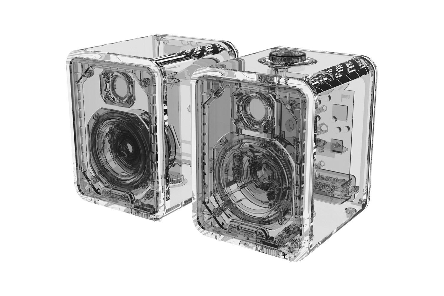 При своих компактных размерах Ruark Audio MR1 имеют двухполосную конфигурацию и оснащены фирменными динамиками: 75 мм басовиком и 20-мм твитером. В колонках установлены усилители, работающие в классе A/B, благодаря чему достигается комфортное звучание музыки. Основную колонку системы можно перевести в моно-режим для тех случаев, когда установка второй АС нежелательна. А для дополнительного усиления басов к Ruark Audio MR1 можно подключить внешний сабвуфер. Управление работой системы возможно с помощью круглого блока кнопок на верхней панели основной колонки или миниатюрного пульта ДУ, а визуальный контроль режимов осуществляется с помощью светодиодной индикации.