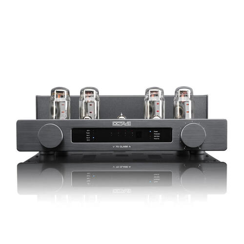 Интегральный ламповый усилитель Octave V 70 Class A построен по двухтактной схеме и работает в классе А. Аппарат имеет привлекательный минималистский дизайн и качественную отделку, характерную для моделей премиум-класса. Данная модель выпускается в черном или серебристом вариантах. Octave V 70 Class A оснащен пятью линейными входами на разъемах RCA, одним балансным входом, а также линейным и регулируемыми выходами. Кроме того, в усилителе имеется вход Bypass, с помощью которого аппарат можно использовать в многоканальной системе домашнего кинотеатра. Опционально Octave V 70 Class A может быть оснащен платой MM/MC-фонокорректора. Оригинальная схема усилителя была разработана инженерами компании и в ней используется динамическое управление смещением ламп выходного каскада. Это позволило создать саморегулирующийся усилитель класса A с выходной мощностью, значительно превышающий этот показатель у классических моделей. Фактически, Octave V 70 Class A обладает всеми преимуществами усилителей класса A с точки зрения плавности и музыкальности звука, с эффективностью двухтактных схем в классе A / B. В усилителе Octave V 70 Class A используется схема с автоматическим смещением, то есть дополнительная подстройка параметров схемы под конкретную используемую лампу не требуется. Светодиодные индикаторы позволят визуально контролировать корректность установленных режимов. Как и другие высококлассные усилители компании Octave, V 70 Class A выпускается в вариантах Power High - выходные лампы KT 120 (стандартная заводская комплектация) либо KT 150 (по предзаказу или приобретаются отдельно), - и Low, на лампах KT88 или 6550. Специальная схема в источнике питания защищает усилитель от различных сетевых помех, которые могут снизить качество его звучания. Аппарат обладает напористым и динамичным звуком с первоклассной детализацией, а также сбалансированным и очень натуральным среднечастотным диапазоном. В отличие от других ламповых усилителей в классе А, Octave V 70 Class A отлично работает с самой различной акустикой, в том числе и обладающей средними показателями чувствительности.
