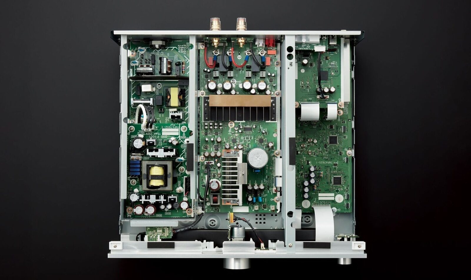 На борту имеется MM/MC-фонокорректор с низким уровнем шумов и возможностью выбора одного из четырех коэффициентов усиления. Для наушников используется усилитель класса AA с отдельными цепями для усиления напряжения и тока.