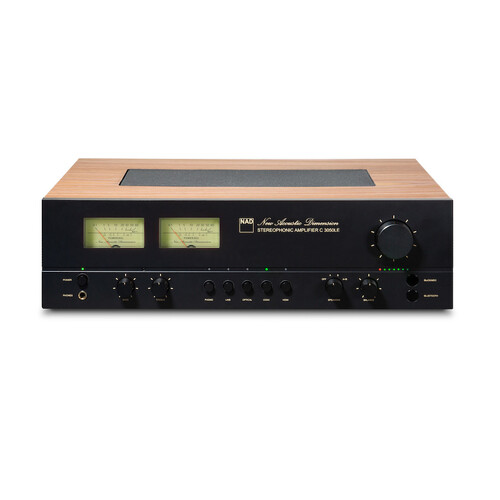 The new C 3050 LE pays homage to NAD's 3030 amplifier, a classic from the 1970s. The C 3050 LE integrated amplifier is housed in a grained walnut cabinet and features a dark gray front panel with the original 70's New Acoustic Dimension logo, two VU meters and push buttons for source selection. On the back of each unit is an individually numbered plaque showing the amplifier's production number.
