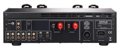 Интегральный ламповый стереофонический усилитель Octave V 70 SE выполнен по двухтактной пентодной схеме, и развивает максимальную мощность 2 х 70 Вт при работе на 4-омную акустику. Как и вся техника компании Octave, этот аппарат полностью изготовлен на собственном заводе фирмы с использованием как проверенных временем, так и новейших технологий, а также отборных комплектующих. Конструктивной усилитель V 70 SE основан на базе очень удачной модели V 70, но имеет улучшенные усилительные каскады, а также доработанный блок питания. В драйверной схеме теперь используются высококачественные танталовые конденсаторы, обеспечивающие более стабильные характеристики схемы. Накал ламп в этом каскаде питается стабилизированным напряжением, что позволило существенно снизить шум, а сам этот источник, как и весь блок питания усилителя, контролируется специальной управляющей схемой. Последняя отвечает за плавную подачу и снятие напряжения с ламп, а также защищает их при возникновении нештатных ситуаций. Предусмотрен также Eco-режим работы усилителя, когда после 9 минут «простоя» (в отсутствие входного сигнала) Octave V 70 SE переходит на пониженное потребление мощности. В усилителе используется фиксированное смещение ламп с возможностью его точной подстройки, и очень удобная светодиодная индикаций режимов их работы. Поэтому в случае замены ламп пользователь может сам настроить оптимальное значение тока смещения, с помощью простой отвертки. Octave V 70 SE оснащен разъемом для подключения внешнего фирменного блока питания Black Box (в стандартной или улучшенной Super версиях). Использование этого блока питания позволяет существенно улучшить совместимость усилителя с различной акустикой, а также еще более расширить динамический диапазон звука, и повысить глубину стереосцены. Octave V 70 SE оснащен четырьмы линейными входами (опционально предусмотрена также установка встроенного фонокорректора), «прямым» входом в обход регулятора громкости, имеется также один балансный вход. Предусмотрены выходы для подключения записывающего устройства, и регулируемый выход с предусилителя. Этот выход буферизирован для лучшего согласования с любыми усилителями мощности и соединительными кабелями.