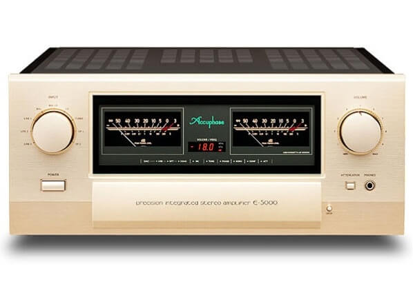 E-5000 — флагманский высокомощный интегральный усилитель класса АВ, разработанный к пятидесятилетию компании Accuphase. Балансный регулятор громкости AAVA в секции предварительного усиления, тончайше сбалансированные цепи и прецизионная секция усиления мощности на транзисторах, работающих по двухтактной схеме в пятиступенчатом каскаде класса АВ, позволяют Е-5000 воспроизводить музыку в тончайших деталях с непревзойденной точностью.