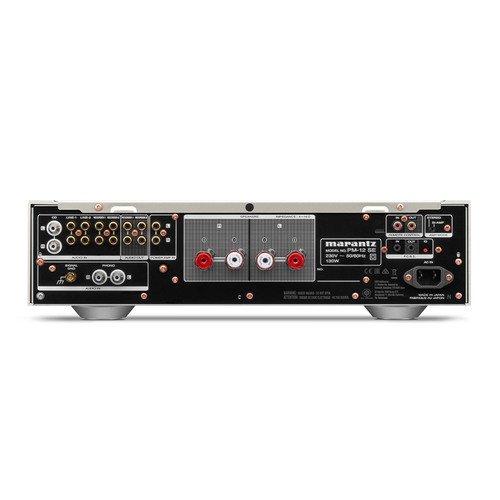 Интегральный усилитель Marantz PM-12 Special Edition относится к премиум-сегменту и включает в себя многие наработки, примененные в таких хорошо известных моделях, как PM-KI Ruby и PM-10. В Marantz PM-12 Special Edition используется полностью дискретная двухкаскадная топология схем. Предварительный каскад усилителя получает питание от тороидального трансформатора, в то время как оконечный каскад (класс D) использует для этого импульсный блок. Благодаря такой конструкции удается устранить влияние оконечной секции на чувствительные сигнальные пути предварительного усилителя и минимизировать шумы, а также получить мощность в 100 Вт на канал при 8 Ом и 200 Вт на канал при 4 Ом. В сигнальных цепях задействованы фирменные усилительные модули HDAM последнего поколения, которые обеспечивают отличную детальность, динамику, способствуют повышению скорости нарастания выходного сигнала и уменьшают искажения. В модели применяется обратная связь по току, преимущества которой очевидны: расширенный диапазон частот, прозрачное звучание, отличные переходные характеристики и возможность работы с тяжелой нагрузкой. На борту Marantz PM-12 Special Edition имеется универсальный MM/MC-фонокорректор, использующий фирменную схему Marantz Musical Premium Phono EQ. Во входном каскаде корректора установлены HDAM-модули в связке с JFET-транзисторами (полевые транзисторы с управляющим p-n-переходом), благодаря чему обеспечивается высокий входной импеданс и сводятся к нулю искажения. Встроенный усилитель для наушников также базируется на модулях HDAM. В модели используется высокоточный регулятор громкости, гарантирующий высокую линейность и отличное разделение каналов. Внутренняя начинка усилителя содержит тщательно подобранные комплектующие высокого класса. Корпус Marantz PM-12 Special Edition выполнен на двухслойном шасси с алюминиевой фронтальной панелью достаточно большой толщины со встроенным круглым OLED-дисплеем. Расположенные на тыльной панели входы для CD-проигрывателя и фонокорректора получили специальные медные RCA-разъемы с никелевым покрытием. Помимо стандартного набора линейных входов и выходов усилитель имеет отдельный вход, ведущий прямо к оконечной секции. Также имеются разъемы фирменной D-Bus-шины и шины F.C.B.S., что дает возможность построения управляемой системы с несколькими усилителями Marantz, которую можно использовать для биампинга, а также для многоканальных подключений. На задней стенке корпуса находится ползунок, переводящий модель в биампинговый режим. Для подключения спикеров служат две пары клемм, изготовленных из меди высокой степени очистки. Управляется усилитель с помощью штатного универсального пульта.