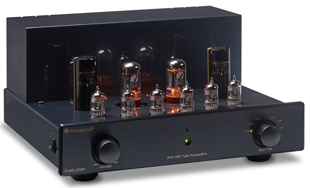 PrimaLuna EVO 400 Integrated – это старший из интегрированных усилителей, выдающий на лампах EL34 в триодном режиме работы 2 х 38 Вт или 2 х 70 Вт – в ультралинейном режиме. Возможность переключения режимов работы в PrimaLuna EVO 400 Integrated распространяется и на усилитель для наушников. Дело в том, что на него работают все мощные лампы, а понижает мощность сигнала до приемлемого для наушников уровня делитель напряжения. Элегантная и хорошо сконструированная схема позволяет также мгновенно переключать звук с колонок на наушники, импеданс которых может находиться в самых широких пределах. Фирменная система адаптивного автосмещения - PrimaLuna Adaptive AutoBias использует целый массив датчиков для мониторинга состояния ламп и плавной подстройки режимов в реальном времени. Но что самое важное - это единственная в своем роде схема, которая поистине "адаптивная», благодаря тому, что она решает проблему нелинейного поведения характеристик ламп на самых высоких уровнях громкости, и поэтому снижает искажения более, чем на 50% , заодно значительно продлевая срок службы ламп. Система адаптивного автосмещения AutoBias полностью пассивная и не стоит на пути аудио сигнала. Результат – практически полное отсутствие необходимости в обслуживании усилителей, долгий срок жизни ламп, и самые низкие искажения - для изумительного качества звука. Adaptive AutoBias обеспечивает также бесподобную гибкость за счет использования практически любых ламп, имеющихся сегодня на рынке. У нее имеется даже переключатель для тонкой настройки режимов с лампами типов: EL-34 и KT88/KT120/KT150. Инженеры PrimaLuna хотели облегчить жизнь владельцев ламповых усилителей до такой степени, чтобы у них никогда не возникла мысль отказаться от «ламповой мечты». Поэтому они придумали индикатор отказа лампы. В такой ситуации система Adaptive AutoBias немедленно переводит усилитель в режим защиты, поэтому никакие детали не смогут выйти из строя. Красный светодиод загорается перед лампой, которая нуждается в замене. Просто вставьте другую лампу и снова слушайте. В схеме усилителя PrimaLuna EVO 400 Integrated используются только отборные компоненты высокого качества, такие как музыкальные и особо линейные японские резисторы TAKMAN с малым уровнем шумов, заказные тороидальные силовые трансформаторы в массивных корпусах, широкополосные выходные трансформаторы собственной намотки, ; керамические ламповые панельки; регулятор уровня громкости от ALPS; конденсаторы от Nichicon и DuRoch; супербыстрые диоды Philips; массивные позолоченные колоночные клеммы конструкции WBT (все клеммы фрезерованы из меди и не имеют внутренних полостей – для лучшей проводимости и повышенной надежности); позолоченные входные RCA разъемы на панели. Все трансформаторы PrimaLuna оснащены схемой PTP™ (Power Transformer Protection). В случае перегрева силового трансформатора или перегрузки эта схема отключает питание первичной обмотки, позволяя ему остыть, прежде чем будет причинен вред. Когда трансформатор остынет, соединение восстанавливается и, если ничего не вышло из строя, усилитель сам включится вновь и будет работать правильно. Во всех своих продуктах PrimaLuna использует навесной монтаж с пайкой проводов от точки-к-точке (Point to Point Wiring) и тщательно продуманное расположение компонентов. Весь путь сигнала, включая резисторы и конденсаторы, кропотливо пропаян вручную толстым кабелем мастерами своего дела. В 