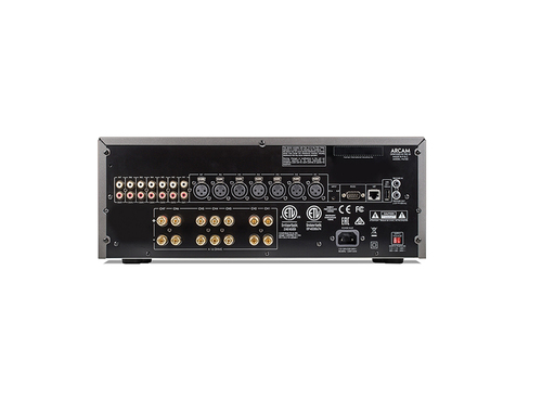 Семиканальный оконечник Arcam PA720 впечатляет своим лаконичным монументальным дизайном, выполненным в индустриальном стиле. Габаритный восемнадцатикилограммовый корпус получил надежное демпфирование. На его тыльной стороне находятся семь входных и аналогичное количество выходных RCA-разъемов. Несимметричные входы дублируются таким же количеством балансных входов XLR, а для выбора между RCA- и XLR-подключением имеется ползунковый переключатель. Аппарат оснащается интерфейсами LAN и RS-232, которые позволяют интегрировать усилитель в систему домашней автоматизации (Crestron и т.п.) или же в локальную сеть с целью мониторинга и IP-управления. На борту имеются два триггерных разъема (вход/выход) и порт USB, который служит для обновления софта и USB-подзарядки различных портативных устройств. Для подключения спикеров используются семь пар высококачественных винтовых терминалов. Многоканальный оконечник Arcam PA720 станет идеальным решением для работы в составе мощной современной кинотеатральной системы.