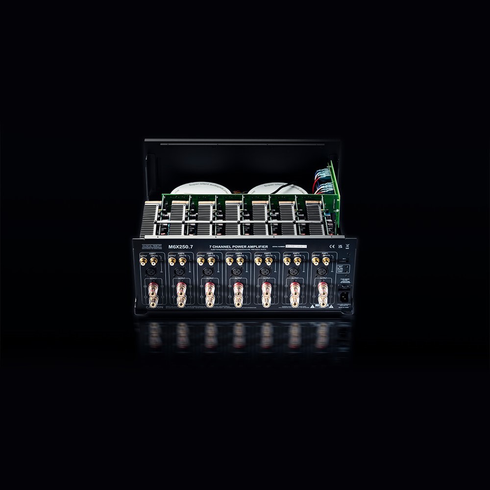 Musical Fidelity M6x 250.7 - это семиканальный усилитель мощности, имеющий модульную конструкцию. Каждый модуль усилителя выдаёт 250 Вт на нагрузке 4 Ом и работает в классе АВ.