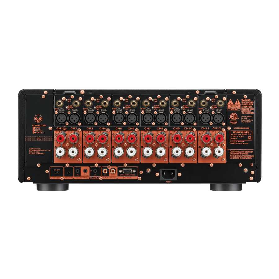 Marantz AMP 20 предоставляет 12 мощных каналов в одном корпусе — каждый по 200 Вт, чтобы обеспечить исключительную производительность без потери качества звука даже на высоких уровнях громкости. Для передачи сигнала без помех усилитель AMP 20 оснащен симметричными XLR-входами. Они помогают свести к минимуму возможные помехи и обеспечивают подключение к предусилителю AV без потерь. Таким образом, комбинация AMP 20 и AV 20 предлагает полностью согласованное решение для любителей домашних кинотеатров-аудиофилов.