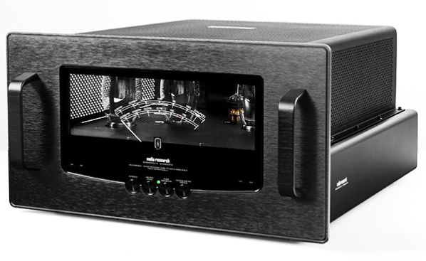 Ламповый усилитель мощности Audio Research Reference 160M. Усилитель отличается использованием четырех столь полюбившихся фирме ламп KT150 в каждом моноблоке. При этом пользователь сможет также устанавливать на выходе такие популярные лампы, как 6550, KT88 и KT120. Правда, учитывая насколько хороши KT150, вряд ли кому-то это понадобится. На входе и в драйверной секции трудятся две 6H30. Для лучшего охлаждения в защитную крышку встроен вентилятор. Фирменная черта всех новых ламповых усилителей Audio Research – стрелочные индикаторы выходной мощности с молочно-белой подсветкой. Печатная плата – четырехслойная, позаимствованная у предварительных усилителей компании. В блоке питания использован трансформатор повышенной мощности и набор конденсаторов увеличенной емкости. На задней панели есть как симметричный вход на XLR, так и обычный на RCA. Мощность одного моноблока составляет 75 Ватт в триодном и 150 Ватт в ультралинейном режиме.