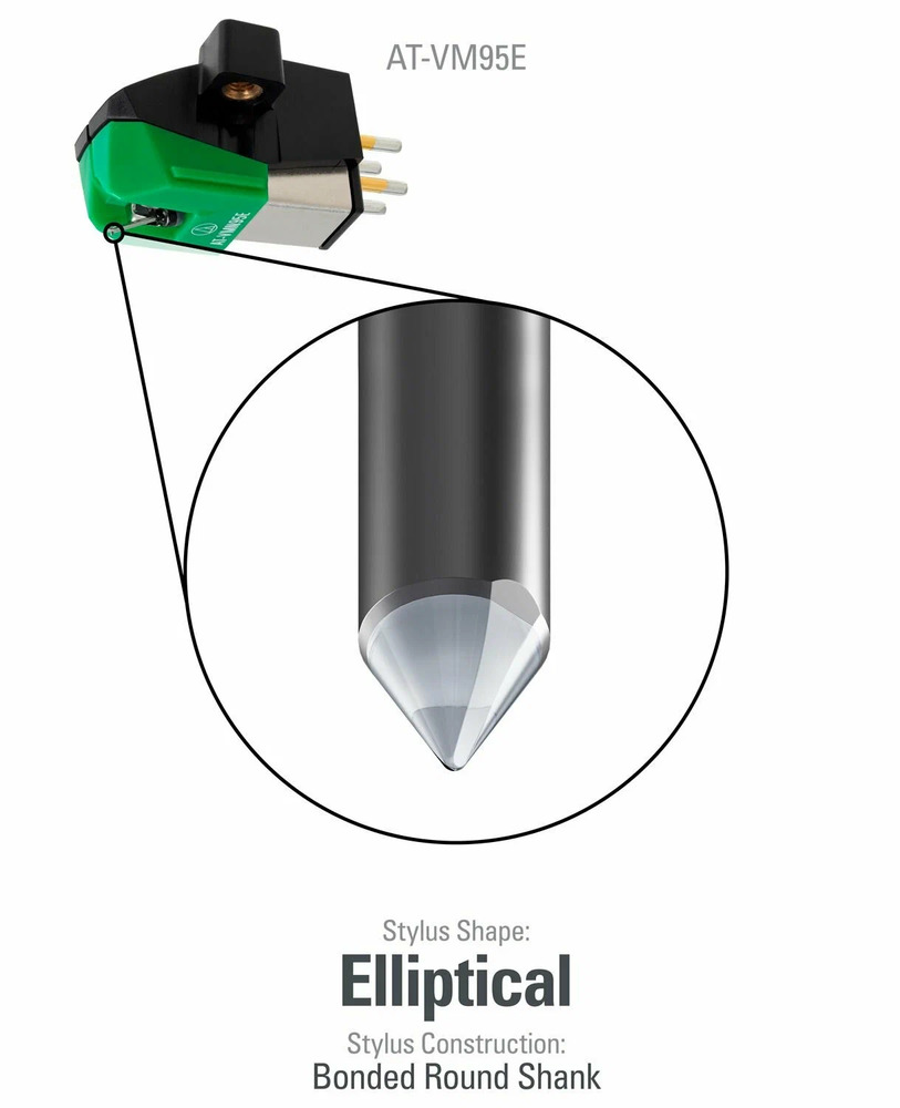 Audio-Technica AT-VM95E - новый эллиптический картридж начального уровня, пришел на смену легендарной головке звукоснимателя AT95E (AT95EХ). В его конструкции использованы преимущества разработки модификации AT95EX, представленной в 2015 году.