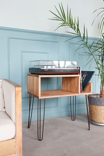 OnlyVinyl Vinyl Record Player Stand – это напольная подставка для винилового проигрывателя и коллекции пластинок, тонкого и элегантного дизайна, на металлических ножках-шпильках. Стенд ручной работы и выполнен из премиум массива дуба.