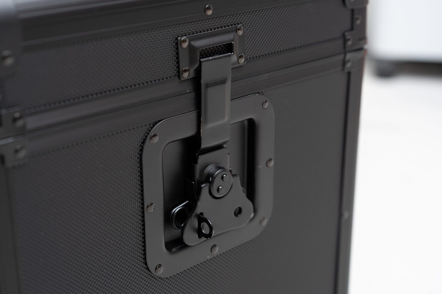 Кейс из алюминия с фронтальным закрытием для безопасной транспортировки и хранения около 50 виниловых дисков. Кейс с ручкой для переноски из АBS, резиновыми ножками, внутренней пеной с памятью формы и закрытым замком является прочным и легким, и вы можете доверить ему свои самые ценные виниловые диски без каких-либо опасений.