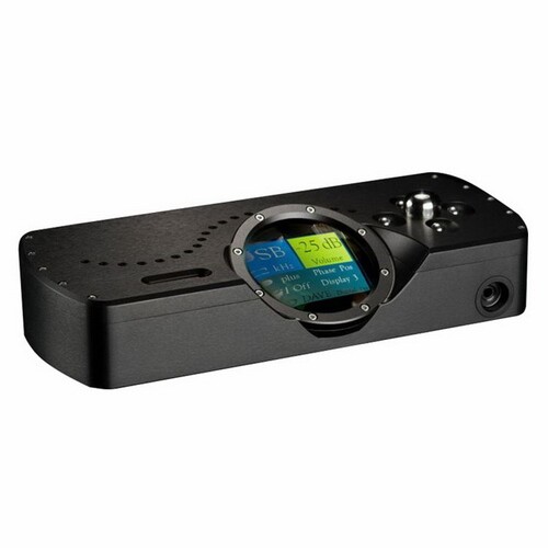 Цифро-аналоговый преобразователь DAVE является самым совершенным устройством данного класса в каталоге компании Chord Electronics. Аппарат изготовлен в корпусе из фрезерованного алюминия с великолепной отделкой, необычный дизайн которого стал уже своеобразной визитной карточкой топовых компонентов Chord. Центральное место в его дизайне занимает круглый цветной ЖК-дисплей, на который в очень удобной форме выводится вся информация о работе устройства. Справа от дисплея на фронтальной панели расположено гнездо для подключения наушников, а на верхней – четыре кнопки и рукоятка, также имеющая довольно непривычную, и в то же время весьма привлекательную и удобную форму. ЦАП выполнен на базе микросхемы Spartan 6 собственной разработки Chord, в которой используются программируемые вентильные матрицы (FPGA). Ее применение позволило снизить до минимума уровень джитера, а также получить рекордное значение соотношения сигнал/шум при обработке цифровых сигналов любых типов. Кроме того, в DAVE используется принципиально новый цифровой фильтр WTA, который разработал Роб Уоттс. Фильтр сопряжен с параллельным интерфейсом и способен обрабатывать цифровой поток со скоростью 256 FS, что является исключительно важным для полной реализации качества звука, которое могут обеспечить новые форматы High-resolution. DAVE оснащен балансными и небалансными аналоговыми выходами, сигнал на который может поступать с фиксированным или нефиксированным уровнем, а также полный набор цифровых входов. Здесь представлен USB-вход, способный принимать сигнал в формате PCM с частотой до 768 кГц и DSD до 256 МГц, четыре коаксиальных входа, представленные разъемами BNC, балансный AES и оптический входы. Также на задней панели DAVE имеют четыре цифровых коаксиальных выхода на разъемах BNC, обозначенных как DX. На них выводится цифровой поток в режиме Dual-Data с частотой 768 кГц для передачи на устройства Chord, которые могут появиться в будущем. Аппарат имеет отключаемый фильтр высоких частот, функцию переключения абсолютной фазы сигнала и оснащен встроенным усилителем для наушников аудиофильского класса, к которому можно подключать модели сопротивлением от 8 до 800 Ом. При этом регулировка громкости в наушниках производится независимо от настройки уровня звука на линейном выходе, и пользователь имеет возможность выбрать одну из четырех установок характера звучания.