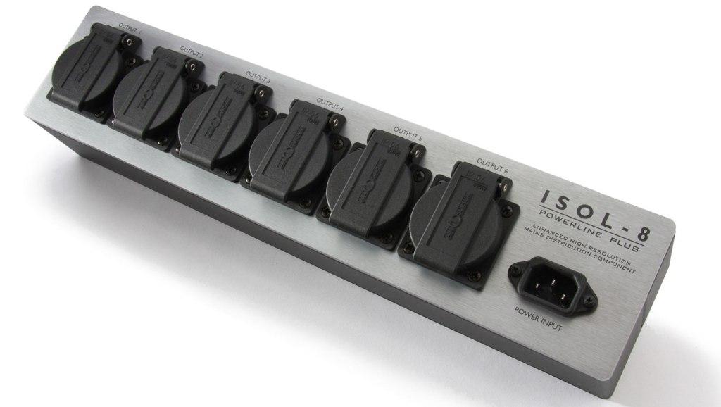 Isol-8 Powerline 6 - самая младшая из моделей линейки Powerline английского бренда Isol-8. Однако во всей линейке применяются исключительно высококачественные компоненты и материалы для корпуса, разводки и разъемов самих розеток. Разница между моделями - лишь в степени и типе фильтрации электрического тока. Так вот в Isol-8 Powerline 6 way какая-либо фильтрация полностью отсутствует, и прибор представляет собой просто качественный сетевой разветвитель на 6 розеток стандартного типа Schuko. И это очень здорово, что фирма выпустила подобную модель, потому что несмотря на отсутствие фильтрации некоторые аудиофилы предпочтут именно такой вариант разветвителя. Влияние фильтрующих элементов в разных системах сказывается по-разному: где-то происходят улучшения, а где-то звук может даже ухудшиться. Как бы там ни было, качественный разветвитель, как и простой качественный сетевой кабель, звук не ухудшит, а вот улучшить - может запросто! Корпус Isol-8 Powerline 6 way выполнен из анодированного листа алюминия, толщиной в 6 мм, обработанного с использованием станка с ЧПУ. Каждая розетка, согласно требованиям класса защиты IP54, защищена специальной крышкой, предотвращающей любое случайное проникновение к опасным токоведущим частям твердых предметов, а также пыли и влаги. Разводка внутри корпуса выполнена из провода с фторопластовой изоляцией, проводником же служит посеребреная медь. Входной разъем IEC (без предохранителя) находится на лицевой стороне прибора рядом со всеми розетками. Максимальный суммарный допустимый ток для прибора составляет 10 Ампер. В стандартном варианте поставки отсутствует какой либо сетевой шнур. Тем самым компания Isol-8 предлагает пользователю самостоятельно подобрать подходящий сетевой кабель - как обычно и происходит с полноценными компонентами тракта. Однако рекомендацию производитель все же приводит. Так, Isol-8 советует воспользоваться одним из экранированных кабелей Isolink собственного производства. По желанию клиента, существует возможность заказа варианта разветвителя Powerline 8 way с профессиональным сетевым разъемом Neutrik PowerCon, обеспечивающих крайне надежное и удобное соединение. Весит Isol-8 Powerline 6 way почти два килограмма, а произведен продукт непосредственно в Великобритании, что, конечно, добавляет впечатлению солидности и настоящего качества изделия.