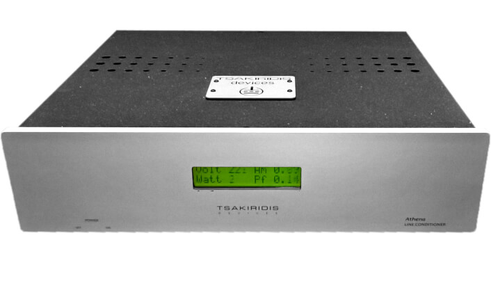 Athena-это линейный кондиционер питания, который оснащен линейным фильтром мощностью 2500 Вт, изолирующим трансформатором и коррекцией коэффициента мощности. Линейный фильтр защищает от перенапряжения и скачков напряжения и "очищает" все паразитные токи. Изолирующий трансформатор предназначен для дополнительной защиты и изоляции музыкальных источников звуковой системы. Информативный ЖК - дисплей предоставляет всю информацию о параметрах питания. У Афины есть отправитель данных Bluetooth для связи со смартфонами. Приложение предоставляется компанией Tsakiridis.