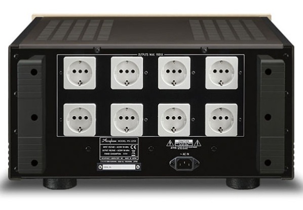 Сетевой фильтр, регенератор, тип фильтрации: формирование идеального синуса с помощью генератора, три этапа устранения шума, высокоточный эталон формы волны, гармоники: 0,08%, выходное напряжение: 230 V ±3.0 В, ток нагрузки: 3,9 A, коммутация: 1 х 15А, выход: 8 х Schuko, габариты: 465 х 243 х 490 мм, вес: 51 кг, варианты цветов: золотистый. Accuphase PS-1250 кондиционер питания. В его основу положена технология сравнения сетевого напряжения с образцовой синусоидальной волновой формой и устранения всех различий. В PS-1250 реализовано уже шестое поколение этой технологии. На LCD-экране аппарата можно наблюдать формы входного и выходного сигналов, убеждаясь в эффективности работы устройства. Accuphase PS-1250 имеет 8 выходных терминалов. Выходное напряжение 230 ±3В, выходной ток – до 3,9 А/1200 ВA. Уровень гармонических искажений выходного сигнала не более 0,08%. Габариты 465 x 243 x 499 мм, масса 41,3 кг.