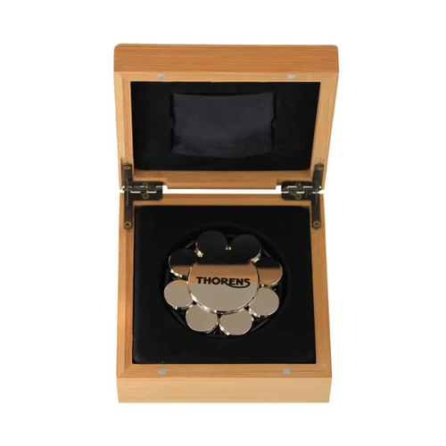 Thorens Stabilizer Record Weight поставляется в элегантной деревянной шкатулке.