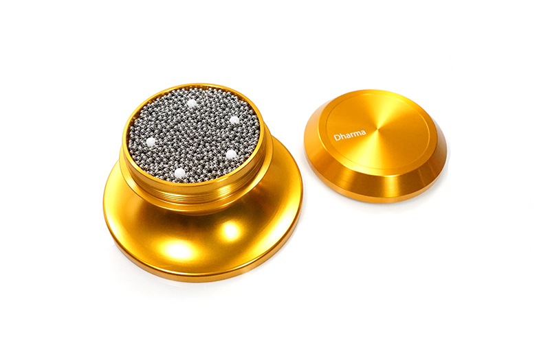 Внутренняя полость (резонатор) Dharma содержит стальную дробь и керамические шарики в количестве 5200 штук. Данная структура эффективно рассеивает и поглощает любые вибрации и колебания в широком диапазоне частот.