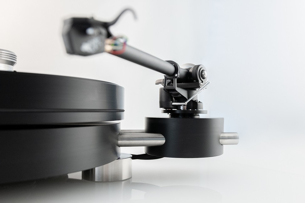 Аппарат позволяет установить два тонарма и под каждый выбрать базу. Это можно сделать сразу, либо купить «стандартный пакет», а дальше докупать детали. Компания предлагает на выбор тонармы длиной 9 и 12 дюймов с разными посадочными площадками. В этом ценовом диапазоне существует очень мало моделей, позволяющих установку двух 12-дюймовых тонармов. И это огромный плюс для тех, кто не хочет обходиться одним тонармом и одной головкой звукоснимателя.