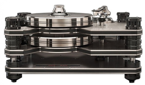 Проигрыватель виниловых дисков Kronos Audio Turntable Pro - улучшенная версия флагмана компании, производится лимитированной серией в 250 штук. В устройстве реализована цифро-аналоговая система контроля скорости вращения опорных дисков. Процессор получает информацию от датчиков вращения и регулирует напряжения питания на моторы таким образом, чтобы идеально сбалансировать скорости вращения опорных дисков. Система полностью автономна и не требует никакой подстройки в процессе эксплуатации.