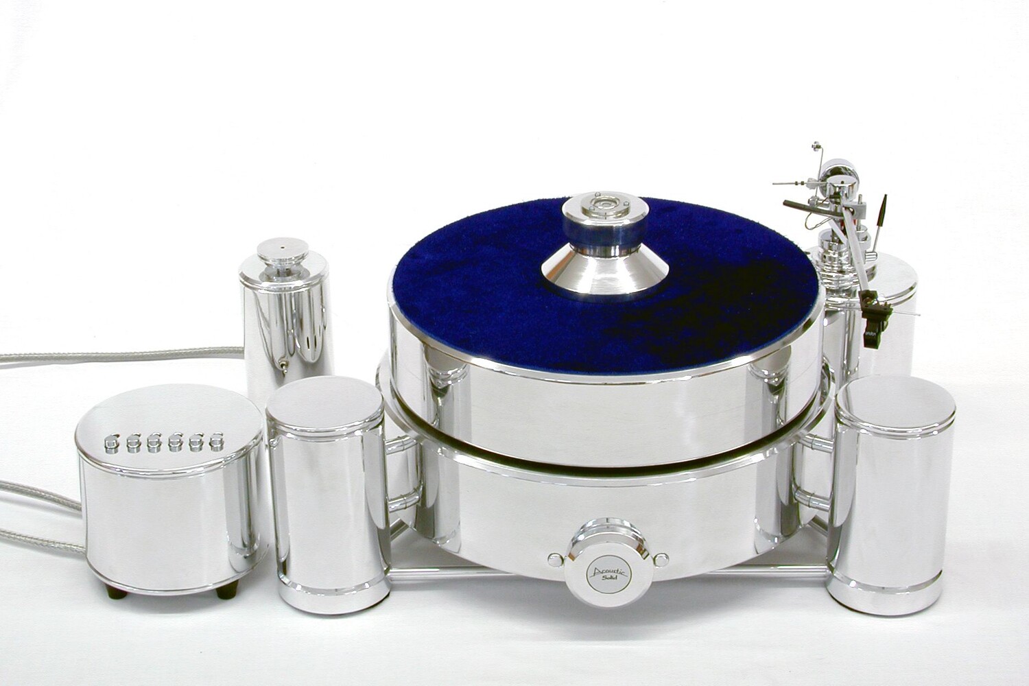 Двухфазный двигатель расположен в отдельном корпусе, что полностью исключает передачу диску проигрывателя паразитной вибрации. Массивный 70-мм диск выполнен из сплошного алюминиевого сплава. Натяжение пассика, которое регулируется перемещением корпуса двигателя, отражается только на динамике привода. Сочетание мата из акрилового пластика и коврика из натуральной кожи обеспечивает превосходное затухание колебаний грамзаписи. Диск проигрывателя вращается на высокоточном подшипнике с подпятником, который является собственной разработкой компании. В подпятнике использована пара трения карбид фольфрама-фторопласт, обеспечивающая низкое трение, не сопровождающееся акустическим шумом. Подшипник установлен на массивное 80-мм шасси из алюминия, которое построено на трёх регулируемых опорах. Звук Acoustic Solid Royal - классический, аналоговый, естественный и музыкальный. Звуковой образ хорошо сфокусирован и стабилен. Динамика впечатляет своим реализмом, а фоновый шум крайне незначителен. При установке в системе соответствующего качества, Вы, действительно, сможете почувствовать, что музыканты находятся прямо в комнате и играют для Вас.