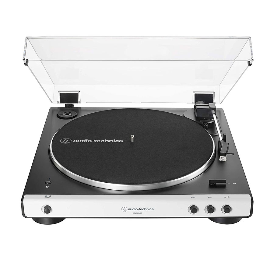 Модель Audio-Technica AT-LP60XBT представляет собой модифицированный проигрыватель, позволяющий не только прослушивать виниловые пластинки, но и возможность соединения с беспроводными колонками или со смартфоном. Поддерживается высококачественный кодек aptX для обеспечения звучания с качнством СД. В остальном это полностью автоматический аппарат начального уровня с пассиковым приводом и мотором постоянного тока, в котором выбор между скоростями вращения диска в 33,3 или 45 об/мин осуществляется с помощью кнопки.