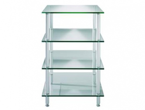 Стойка для аппаратуры и ТВ, количество полок: 4, расстояние между уровнями: 265 мм/250 мм, допустимая нагрузка: 80 кг, толщина стекла: 12 мм, материал: алюминий/стекло, габариты: 600 х 550 х 890 мм, вес: 41 кг.