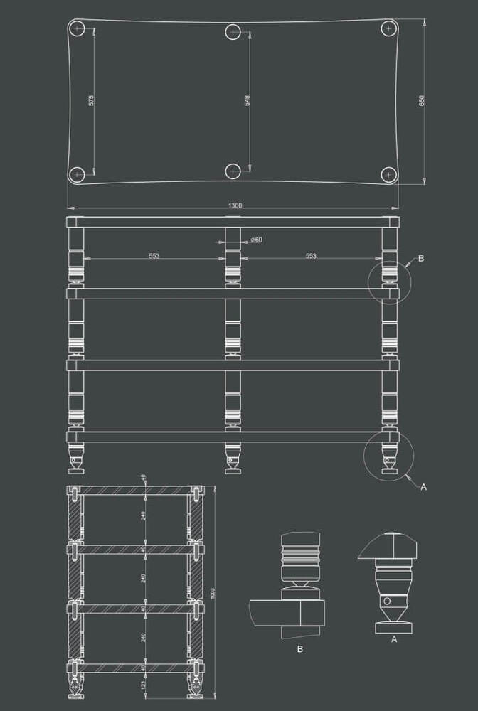 - Конические ножки на всех уровнях полок для полной изоляции всего Hi-Fi-оборудования от любых вибраций