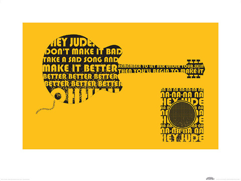 Art Print Lyrics by Lennon & McCartney Hey Jude Guitar
