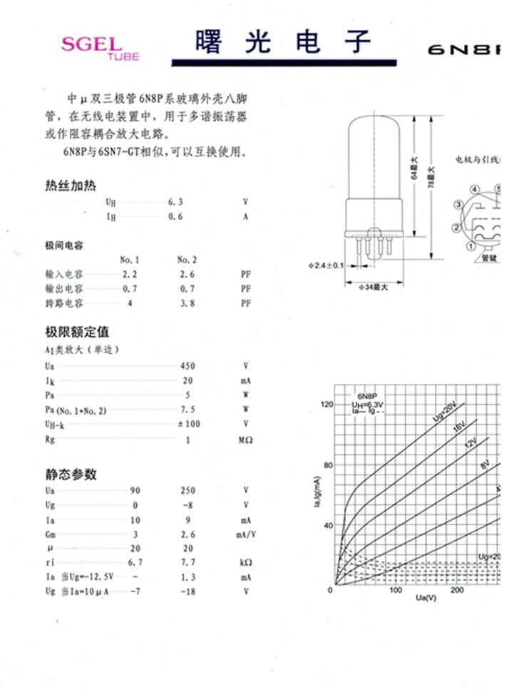 6SN7GT радиолампа, симметричный двойной триод - поздняя версия и точный эквивалент лампы 6SN7, которая широко используется с 40х годов. В последствии она была заменена более «современными» лампами, которые имели меньшие габариты и были менее склонны к шуму. Однако, к концу 90-х годов 6SN7, на волне всплеска HiFi аудио возвращается на рынок благодаря богатому, теплому, "классическому" ламповому звуку. Популярны до сих пор, как усилители для наушников и в входных каскадах усилителей мощности.