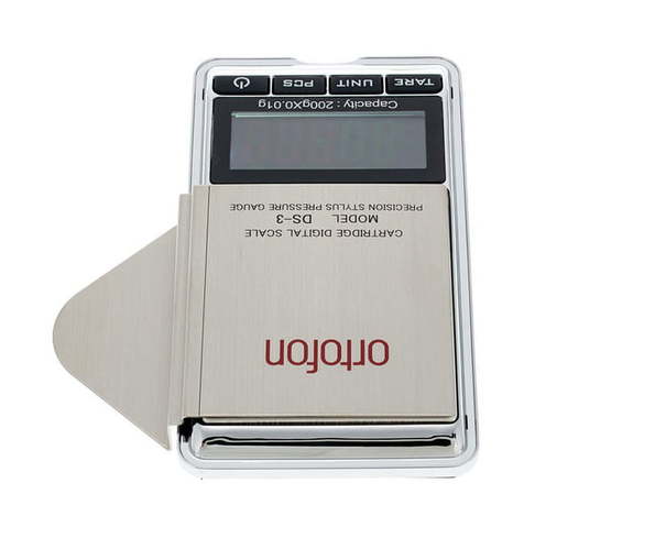 Ortofon DS-3 – это цифровые весы, созданные специально для измерения таких характеристик звукоснимателя, как давление, прижимное усиление иглы, а также прижимное усиление стилуса звукоснимателя. Этот миниатюрный немагнитный инструмент ультратонкой формы позволит с максимальной точностью настроить ваш тонарм. Шкала весов заводская и откалибрована для высокоточного измерения с допуском в 0,01 г. Представленная модель выполнена с некоторыми доработками на основе ее предшественницы DS-1. Несколько новых технологических решений позволили расширить возможности, касающиеся юстировки веса. Рабочий диапазон в данных весах ограничен верхним пределом в 200 г и нижним в 0,01 г. Вся информация об измерения отображается на ярком жидкокристаллическом экране. Питание весы получают от двух стандартных батареек типоразмера ААА. Однако для экономии их заряда в устройстве предусмотрена функция для автоматического отключения. Производитель не рекомендует размещать на измерительной пластике объекты весом более 200 г, а также размещать сами весы на неровных поверхностях, т.к. это может внести серьезные погрешности и ошибки в результаты измерений. Сделано в Японии.